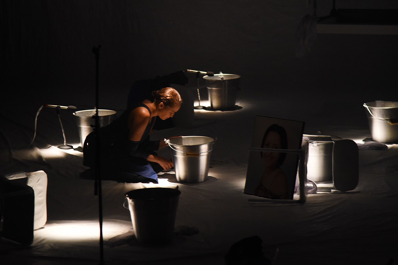 Em cena, como é próprio das dramaturgias do Núcleo, estão depoimentos em formatos de música cantada-falada-tocada-remixada, de dança, de respiração, de imagem. É uma cena bastante heterogênea, feita de diversos recortes justapostos. O espetáculo resulta uma grande enxurrada, um rio cujo fluxo vai ligando elementos bastante singulares, dialogando, dessa maneira, com o processo histórico de países periféricos (periféricos, do ponto de vista do Capital), como o Brasil.