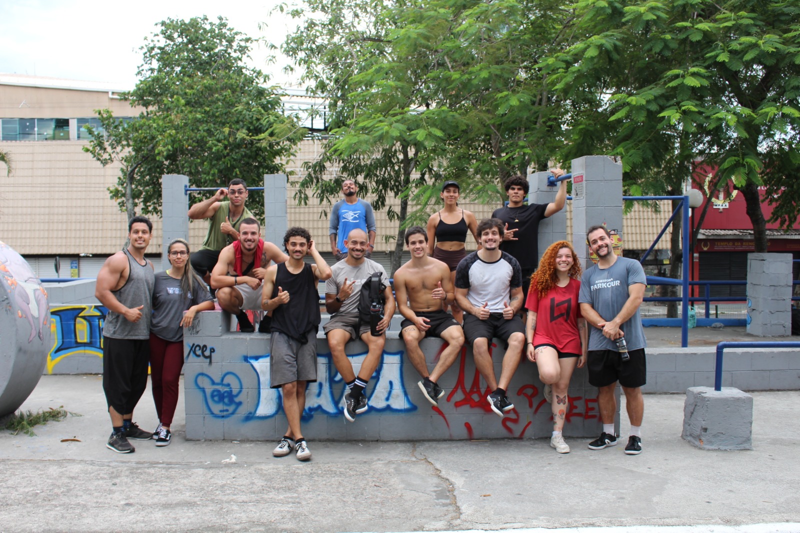 O professor João Marcos explica que o parkour nasceu nos subúrbios franceses, inspirado no Parcours du combattant, um treinamento militar voltado à superação de obstáculos. “Ele nasceu dentro dos subúrbios franceses, descendente de uma prática militar que era o Parcours du combattant”, afirma. Segundo ele, a modalidade combina movimentos da ginástica e de outras práticas corporais para transpor obstáculos com eficiência, fluidez e criatividade. Há pouco mais de 20 anos, o cenário urbano de São Gonçalo começou a testemunhar um movimento que transformaria a cidade: o parkour. O esporte, que consiste em superar obstáculos do ambiente com agilidade, se enraizou na região de forma peculiar, como conta um dos praticantes com 11 anos de experiência: “Diferente da França, que foi o lugar de origem, a galera começou a conhecer pela internet, né? YouTube, redes sociais, Orkut.” Ele lembra que, no início, era comum amigos se reunirem para assistir a vídeos e tentar reproduzir os movimentos. Esse aprendizado coletivo e autodidata foi o motor que impulsionou a prática local. O movimento passou por fases diferentes ao longo do tempo, com períodos de maior organização e outros mais dispersos. Hoje, vive o que os praticantes chamam de “outro tempo histórico”, mas sem perder a essência. “Continuamos seguindo essa trajetória”, afirma o atleta, destacando a resiliência e a paixão que mantém a comunidade unida.