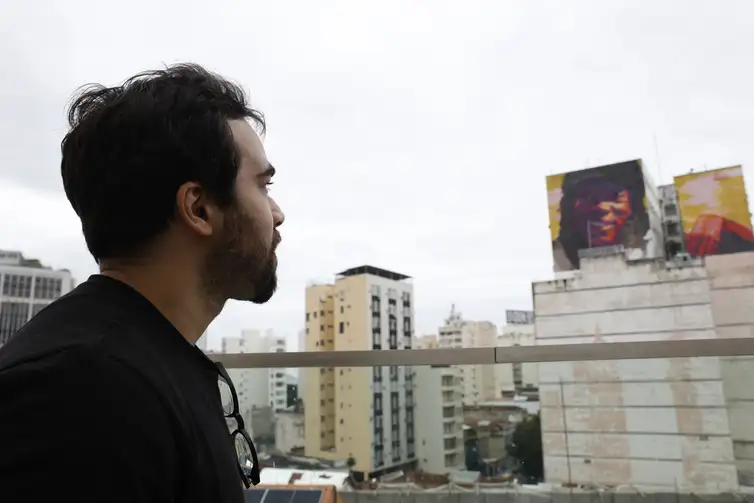 'A pesquisa que eu fiz foi buscar ali uma imagem dentro de um documentário que apresenta ele ali também junto com os amigos, alguns musicistas, músicos, compositores. E aí ele está ali conversando, descontraído, e esse jeito que ele está olhando, ele está olhando a maioria das pessoas que ele olha com carinho, uma certa timidez, admiração e à vontade, sabe? E aí eu quis trazer isso aqui para a Lapa", diz.