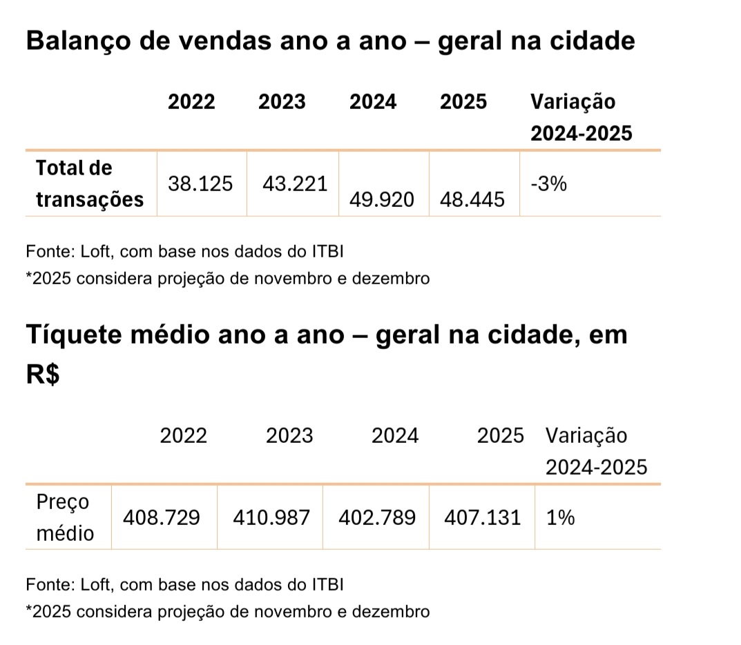 O tíquete médio das transações apresentou leve alta de 1%, chegando a R$ 407,1 mil em 2025.